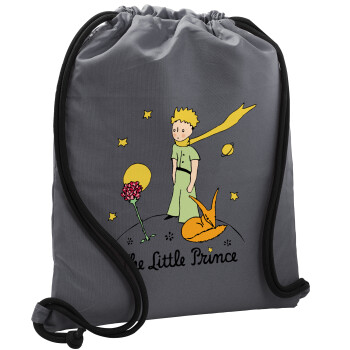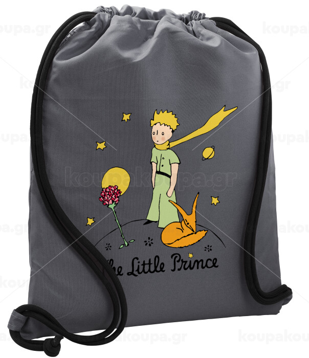 Ο μικρός πρίγκιπας classic, Τσάντα πλάτης πουγκί GYMBAG ΓΚΡΙ, με τσέπη (40x48cm) & χονδρά κορδόνια