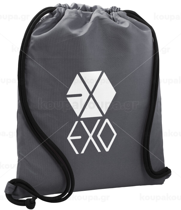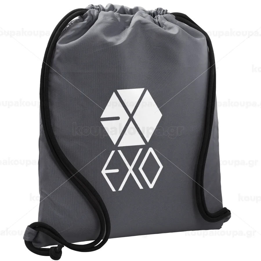 EXO Band korea, Τσάντα πλάτης πουγκί GYMBAG ΓΚΡΙ, με τσέπη (40x48cm) & χονδρά κορδόνια