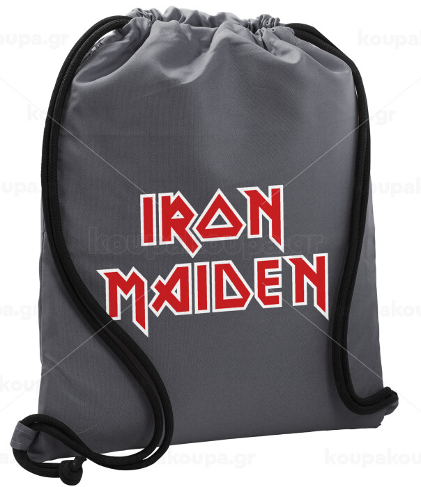 Iron maiden, Τσάντα πλάτης πουγκί GYMBAG ΓΚΡΙ, με τσέπη (40x48cm) & χονδρά κορδόνια