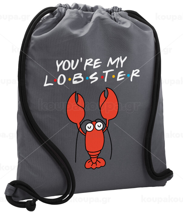 Friends you're my lobster, Τσάντα πλάτης πουγκί GYMBAG ΓΚΡΙ, με τσέπη (40x48cm) & χονδρά κορδόνια