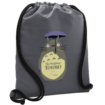 Totoro from My Neighbor Totoro, Τσάντα πλάτης πουγκί GYMBAG ΓΚΡΙ, με τσέπη (40x48cm) & χονδρά κορδόνια