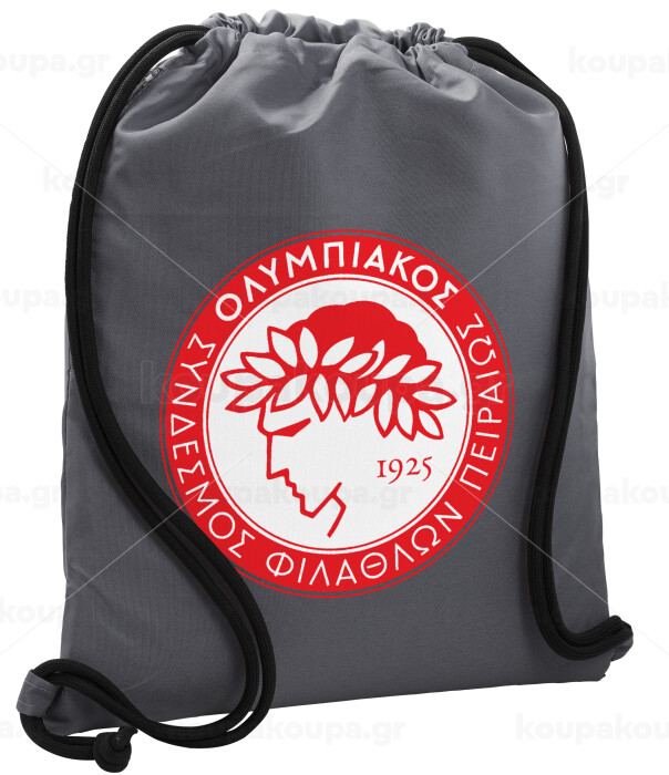 Ολυμπιακός, Τσάντα πλάτης πουγκί GYMBAG ΓΚΡΙ, με τσέπη (40x48cm) & χονδρά κορδόνια