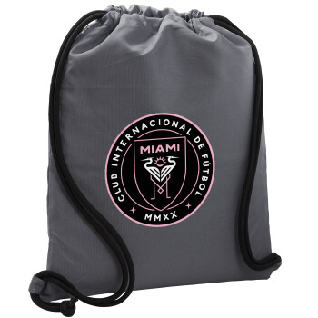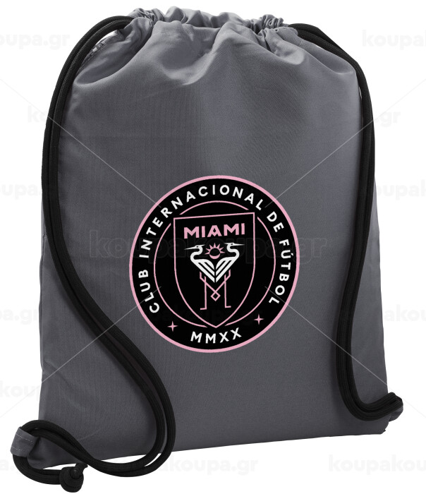 Ίντερ Μαϊάμι (Inter Miami CF), Τσάντα πλάτης πουγκί GYMBAG ΓΚΡΙ, με τσέπη (40x48cm) & χονδρά κορδόνια