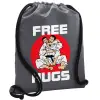 JUDO free hugs, Τσάντα πλάτης πουγκί GYMBAG ΓΚΡΙ, με τσέπη (40x48cm) & χονδρά κορδόνια