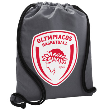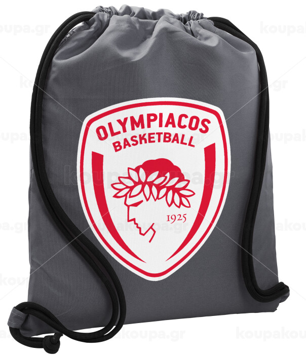 Olympiacos B.C., Τσάντα πλάτης πουγκί GYMBAG ΓΚΡΙ, με τσέπη (40x48cm) & χονδρά κορδόνια
