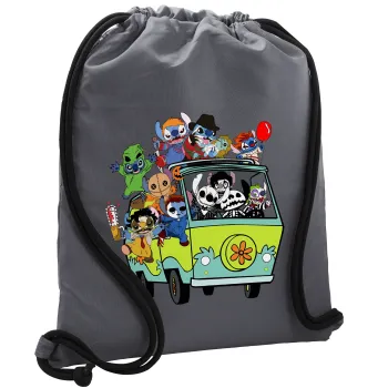 Stitch Halloween scooby car, Τσάντα πλάτης πουγκί GYMBAG ΓΚΡΙ, με τσέπη (40x48cm) & χονδρά κορδόνια