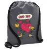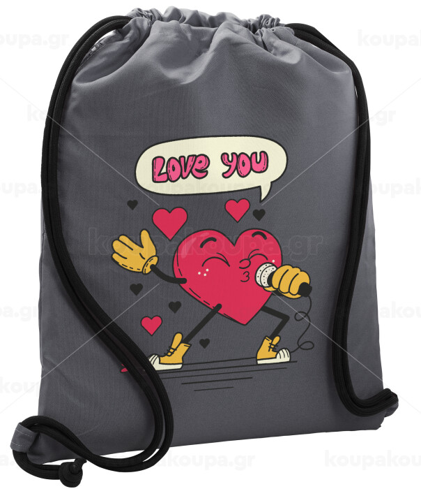 LOVE YOU SINGER!!!, Τσάντα πλάτης πουγκί GYMBAG ΓΚΡΙ, με τσέπη (40x48cm) & χονδρά κορδόνια