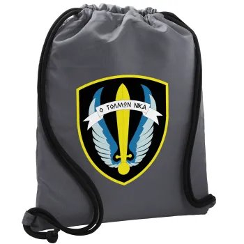 Έμβλημα Μονάδων Καταδρομών Ο Τολμων Νικα - Λοκ, Τσάντα πλάτης πουγκί GYMBAG ΓΚΡΙ, με τσέπη (40x48cm) & χονδρά κορδόνια