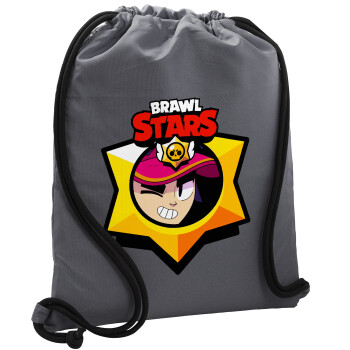 Brawl Stars Fang, Τσάντα πλάτης πουγκί GYMBAG ΓΚΡΙ, με τσέπη (40x48cm) & χονδρά κορδόνια