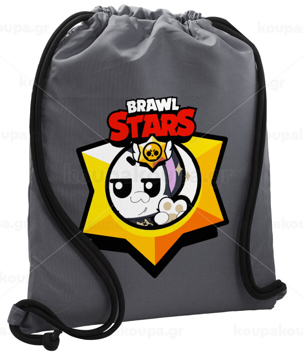 Brawl Stars Kit, Τσάντα πλάτης πουγκί GYMBAG ΓΚΡΙ, με τσέπη (40x48cm) & χονδρά κορδόνια