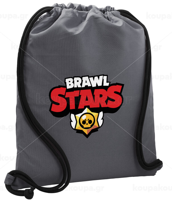 Brawl Stars, Τσάντα πλάτης πουγκί GYMBAG ΓΚΡΙ, με τσέπη (40x48cm) & χονδρά κορδόνια