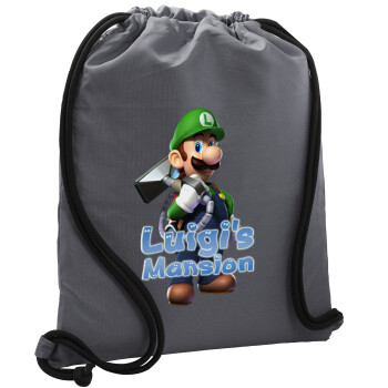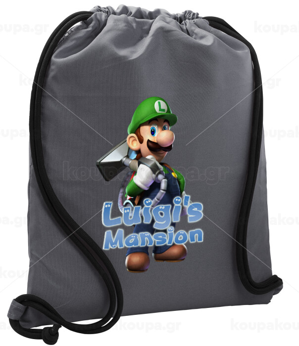 Luigi's Mansion, Τσάντα πλάτης πουγκί GYMBAG ΓΚΡΙ, με τσέπη (40x48cm) & χονδρά κορδόνια