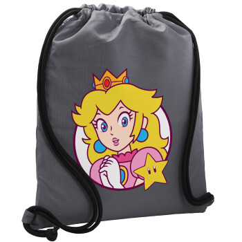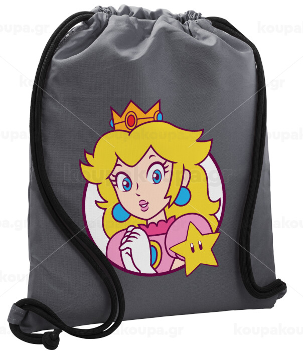 Princess Peach, Τσάντα πλάτης πουγκί GYMBAG ΓΚΡΙ, με τσέπη (40x48cm) & χονδρά κορδόνια