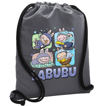 Labubu, Τσάντα πλάτης πουγκί GYMBAG ΓΚΡΙ, με τσέπη (40x48cm) & χονδρά κορδόνια