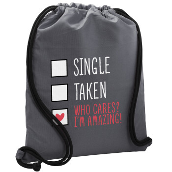 Single, Taken, Who cares i'm amazing, Τσάντα πλάτης πουγκί GYMBAG ΓΚΡΙ, με τσέπη (40x48cm) & χονδρά κορδόνια