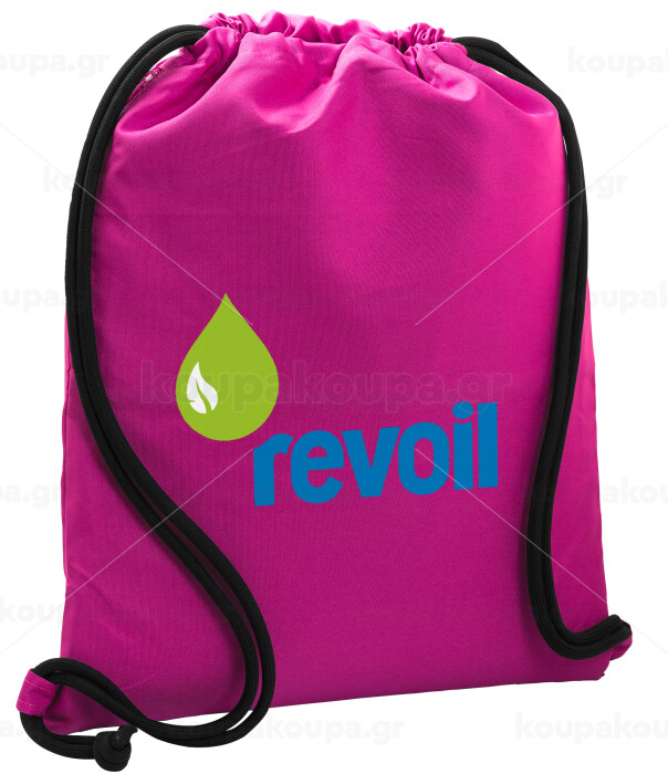 Πρατήριο καυσίμων REVOIL, Τσάντα πλάτης πουγκί GYMBAG Φούξια, με τσέπη (40x48cm) & χονδρά κορδόνια