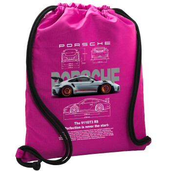 Porsche, Τσάντα πλάτης πουγκί GYMBAG Φούξια, με τσέπη (40x48cm) & χονδρά κορδόνια