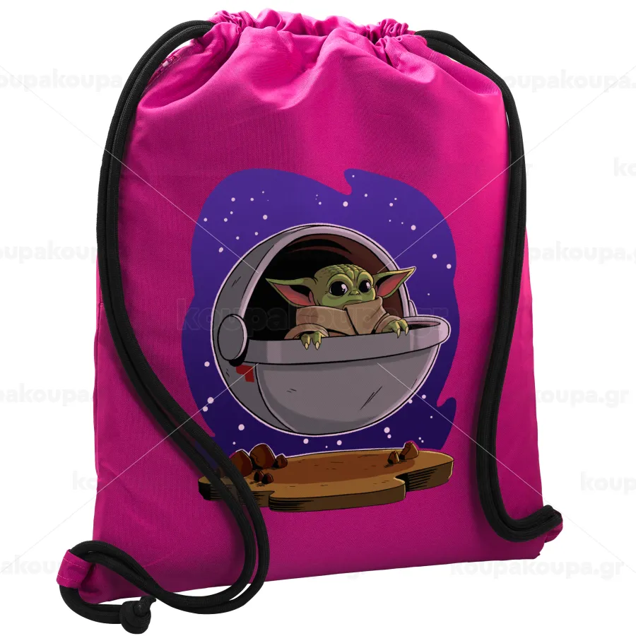 Baby Yoda mandalorian, Τσάντα πλάτης πουγκί GYMBAG Φούξια, με τσέπη (40x48cm) & χονδρά κορδόνια