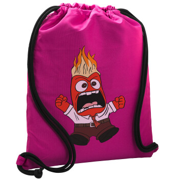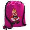 Inside Out θυμός, Τσάντα πλάτης πουγκί GYMBAG Φούξια, με τσέπη (40x48cm) & χονδρά κορδόνια