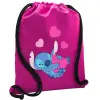 Lilo & Stitch hugs and hearts, Τσάντα πλάτης πουγκί GYMBAG Φούξια, με τσέπη (40x48cm) & χονδρά κορδόνια