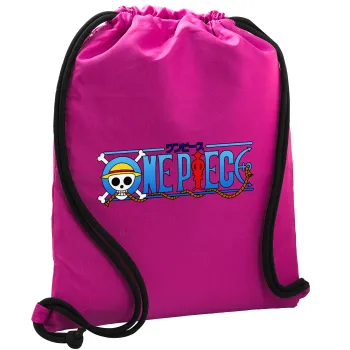 Onepiece logo, Τσάντα πλάτης πουγκί GYMBAG Φούξια, με τσέπη (40x48cm) & χονδρά κορδόνια