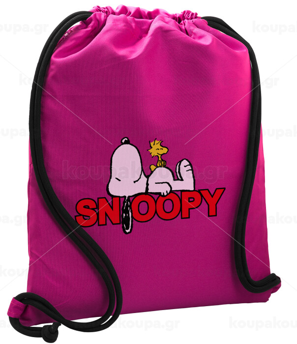 Snoopy sleep, Τσάντα πλάτης πουγκί GYMBAG Φούξια, με τσέπη (40x48cm) & χονδρά κορδόνια