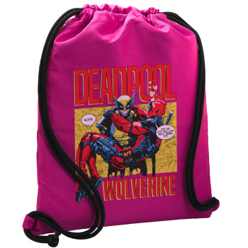Superhero Deadpool Wolverine, Τσάντα πλάτης πουγκί GYMBAG Φούξια, με τσέπη (40x48cm) & χονδρά κορδόνια