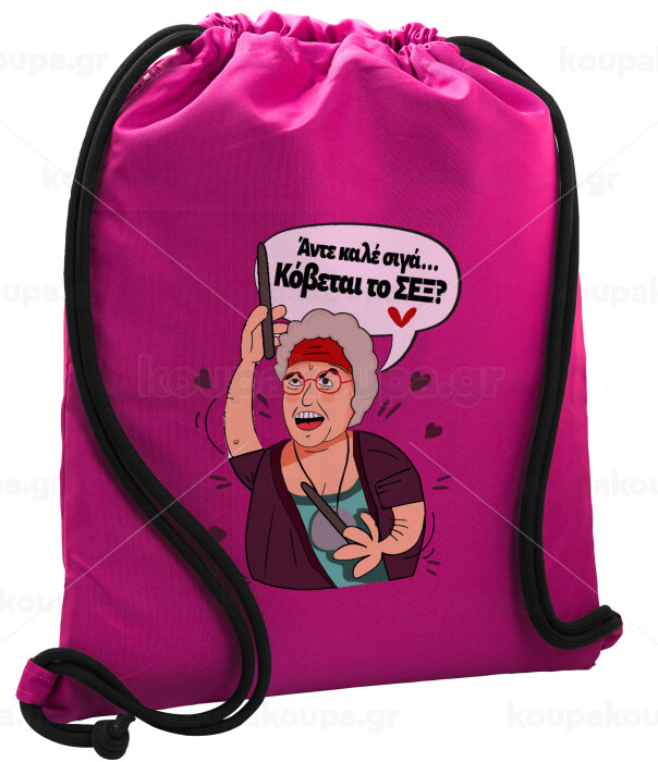 Αντε καλέ, σιγά, κόβεται το σέξ ;, Τσάντα πλάτης πουγκί GYMBAG Φούξια, με τσέπη (40x48cm) & χονδρά κορδόνια