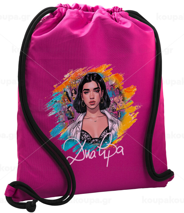 Dua lipa, Τσάντα πλάτης πουγκί GYMBAG Φούξια, με τσέπη (40x48cm) & χονδρά κορδόνια