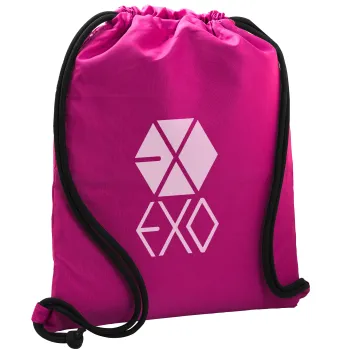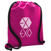 EXO Band korea, Τσάντα πλάτης πουγκί GYMBAG Φούξια, με τσέπη (40x48cm) & χονδρά κορδόνια