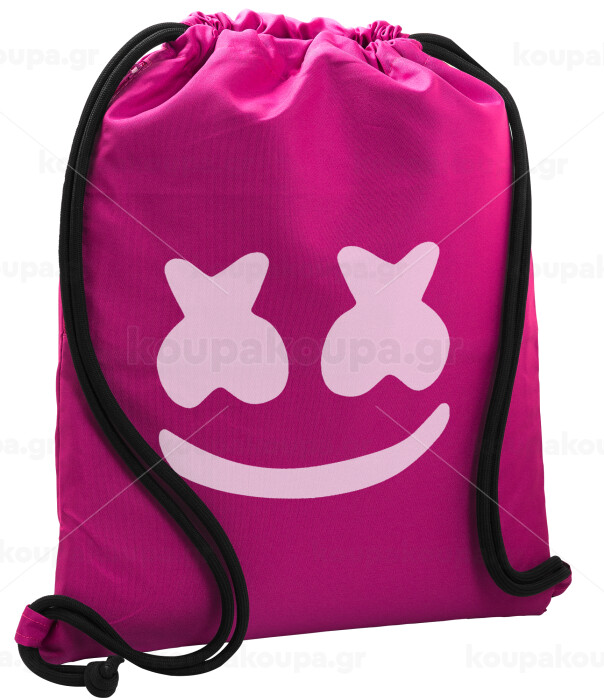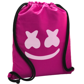 Marshmello, Τσάντα πλάτης πουγκί GYMBAG Φούξια, με τσέπη (40x48cm) & χονδρά κορδόνια