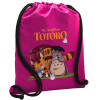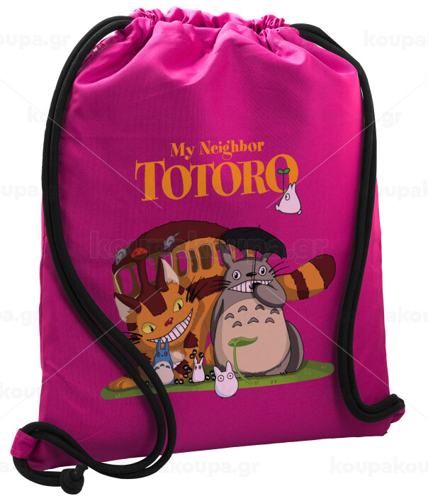 Totoro and Cat, Τσάντα πλάτης πουγκί GYMBAG Φούξια, με τσέπη (40x48cm) & χονδρά κορδόνια