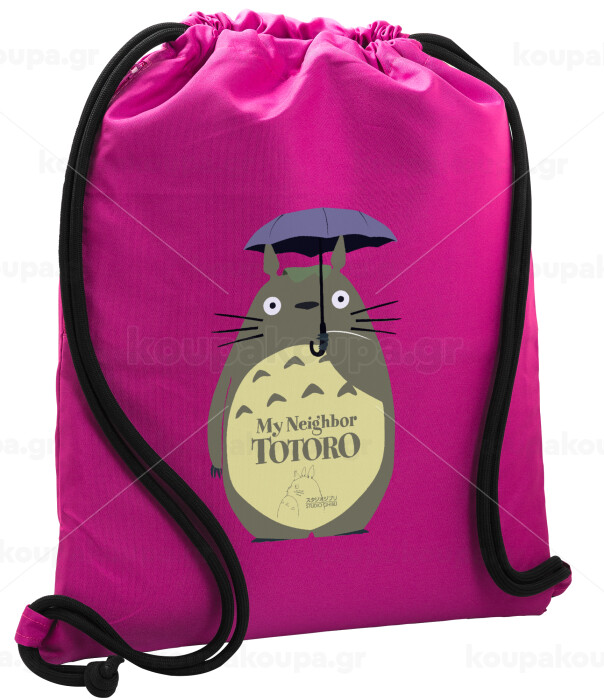 Totoro from My Neighbor Totoro, Τσάντα πλάτης πουγκί GYMBAG Φούξια, με τσέπη (40x48cm) & χονδρά κορδόνια