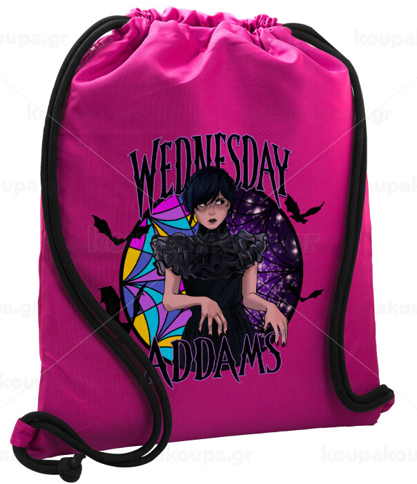 Wednesday Jenna Ortega, Τσάντα πλάτης πουγκί GYMBAG Φούξια, με τσέπη (40x48cm) & χονδρά κορδόνια