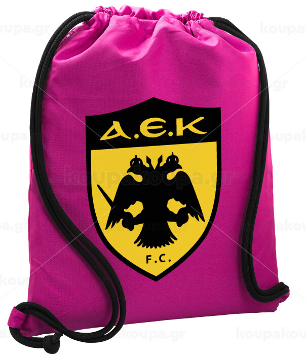 ΑΕΚ, Τσάντα πλάτης πουγκί GYMBAG Φούξια, με τσέπη (40x48cm) & χονδρά κορδόνια
