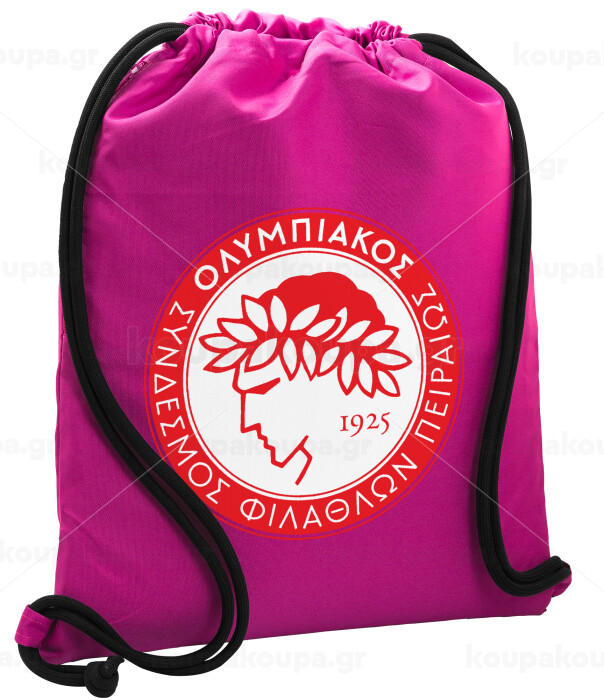 Ολυμπιακός, Τσάντα πλάτης πουγκί GYMBAG Φούξια, με τσέπη (40x48cm) & χονδρά κορδόνια