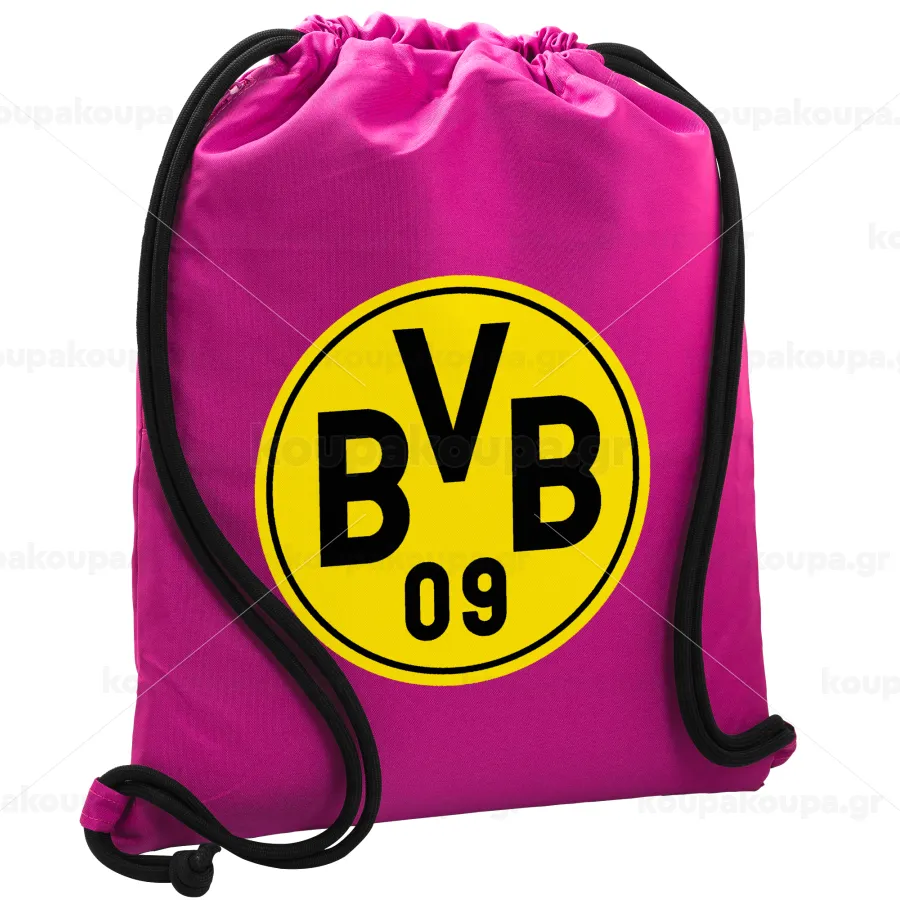 BVB Μπορούσια Ντόρτμουντ , Τσάντα πλάτης πουγκί GYMBAG Φούξια, με τσέπη (40x48cm) & χονδρά κορδόνια
