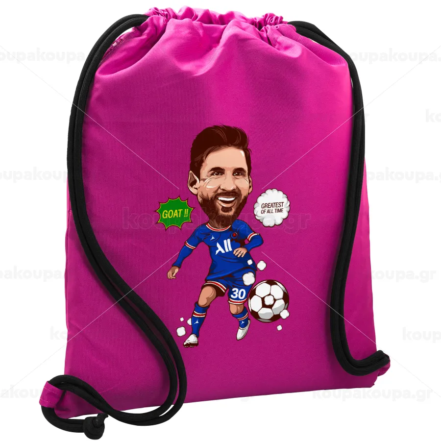 Lionel Messi drawing, Τσάντα πλάτης πουγκί GYMBAG Φούξια, με τσέπη (40x48cm) & χονδρά κορδόνια