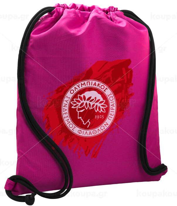 Olympiacos F.C., Τσάντα πλάτης πουγκί GYMBAG Φούξια, με τσέπη (40x48cm) & χονδρά κορδόνια