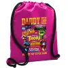 Daddy You Are my Hero, Τσάντα πλάτης πουγκί GYMBAG Φούξια, με τσέπη (40x48cm) & χονδρά κορδόνια