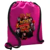 Halloween it's most wonderful time of the year, Τσάντα πλάτης πουγκί GYMBAG Φούξια, με τσέπη (40x48cm) & χονδρά κορδόνια