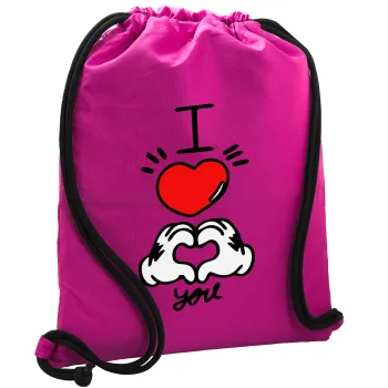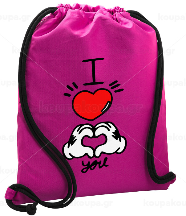comics hands love, Τσάντα πλάτης πουγκί GYMBAG Φούξια, με τσέπη (40x48cm) & χονδρά κορδόνια