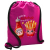 Ketchup To My Fries, Τσάντα πλάτης πουγκί GYMBAG Φούξια, με τσέπη (40x48cm) & χονδρά κορδόνια