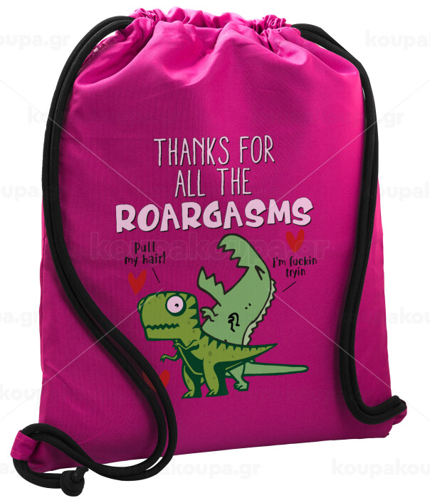 Thanks for all the ROARGASMS, Τσάντα πλάτης πουγκί GYMBAG Φούξια, με τσέπη (40x48cm) & χονδρά κορδόνια