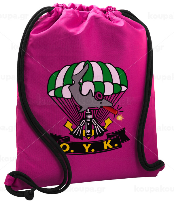 Ο.Υ.Κ., Τσάντα πλάτης πουγκί GYMBAG Φούξια, με τσέπη (40x48cm) & χονδρά κορδόνια