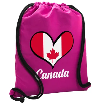 Canada flag, Τσάντα πλάτης πουγκί GYMBAG Φούξια, με τσέπη (40x48cm) & χονδρά κορδόνια