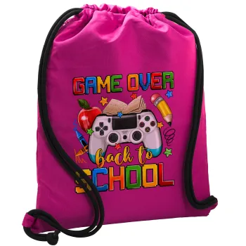 GAME OVER, Back to the School, Τσάντα πλάτης πουγκί GYMBAG Φούξια, με τσέπη (40x48cm) & χονδρά κορδόνια