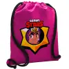 Brawl Stars Shelly, Τσάντα πλάτης πουγκί GYMBAG Φούξια, με τσέπη (40x48cm) & χονδρά κορδόνια