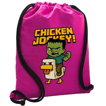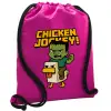 Chicken Jockey, Τσάντα πλάτης πουγκί GYMBAG Φούξια, με τσέπη (40x48cm) & χονδρά κορδόνια
