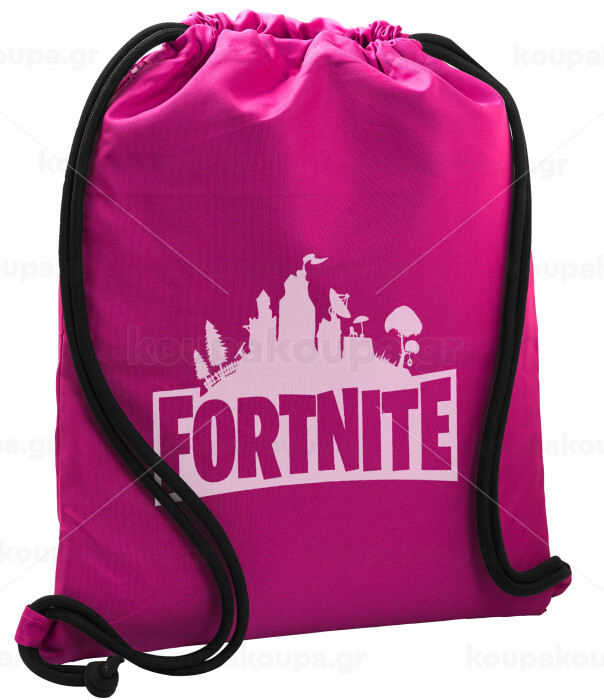 Fortnite, Τσάντα πλάτης πουγκί GYMBAG Φούξια, με τσέπη (40x48cm) & χονδρά κορδόνια